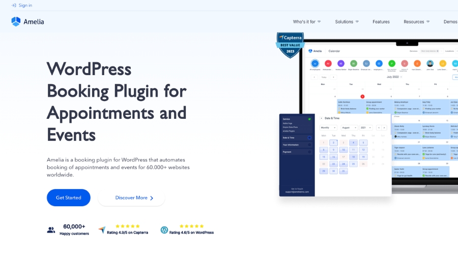 Bookly stands out with its intuitive interface, making it ideal for beginners. It simplifies the booking process, allowing customers to select services, and time slots, and pay online.